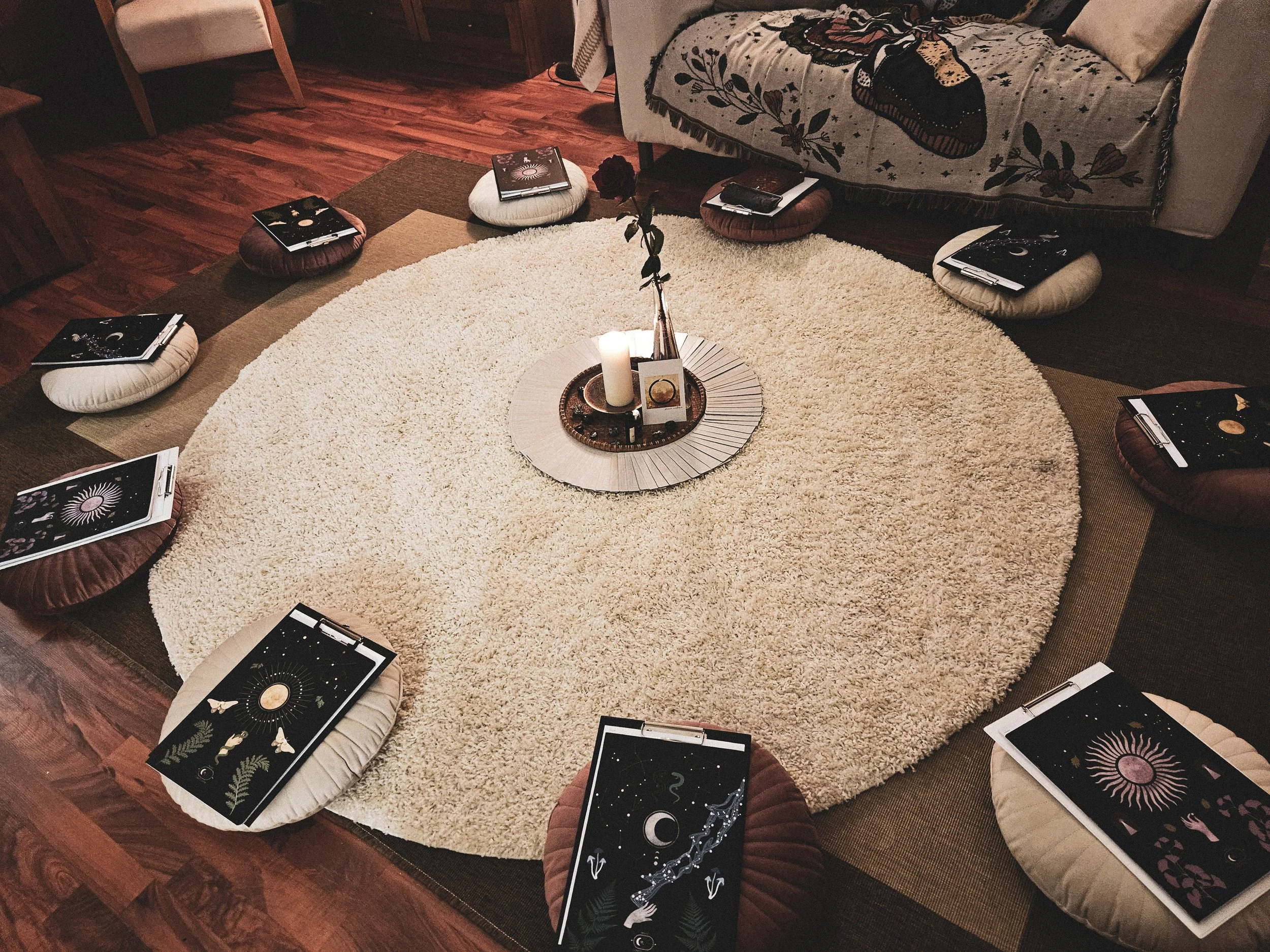 2-2,5 órás alkalmainkon kihasználjuk a közösen végzett önismereti munka inspiráló légkörét, de egyénileg dolgozunk egy-egy adott szimbólummal. Barátságos és közvetlen, de mély hangulatú körre számíthatsz. Először vezetett imaginációval mélyülünk el belső világunkban, majd alkotáson keresztül rögzítjuk tapasztatalainkat, végül megbeszéljük azokat. Különböző kollektív és jungiánus archetípusokkal is megismerkedünk, figyelembe véve az aktuális évköri hatásokat és képeket, amik körbevesznek bennünket. Bármilyen szimbólummal is dolgozunk, a célunk mindig önképed fejlesztése és önelfogadásod erősítése.